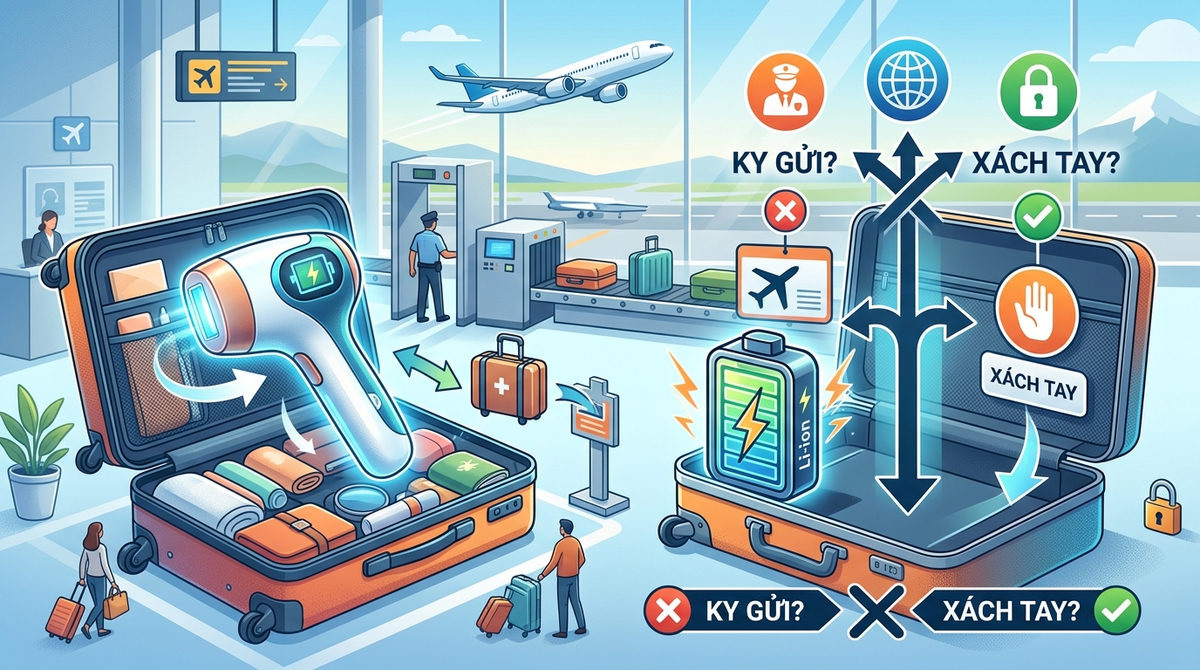 Tại sao bạn không nên ký gửi thiết bị này? Pin lithium có nguy cơ cháy nổ cao trong môi trường áp suất và nhiệt độ thay đổi liên tục ở khoang hàng hóa. Nếu xảy ra sự cố, nhân viên an ninh không thể tiếp cận kịp thời để xử lý. Vì vậy, việc để máy trong hành lý xách tay giúp bạn và hãng hàng không kiểm soát rủi ro tốt hơn.