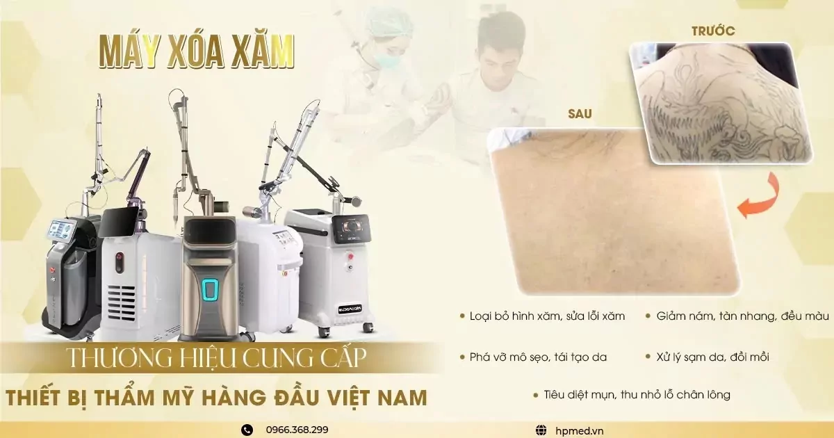 Máy xóa xăm giúp làm mờ và loại bỏ hình xăm nhanh chóng, an toàn, không để lại sẹo. Bằng cách sử dụng các loại máy xóa xăm tiên tiến, các thẩm mỹ viện, spa có thể mang đến cho khách hàng sự hài lòng tuyệt đối về hiệu quả và chất lượng dịch vụ. Khám phá ngay các dòng máy xóa xăm laser tại HPMED để nâng cao chất lượng dịch vụ và đáp ứng nhu cầu làm đẹp ngày càng cao của khách hàng!